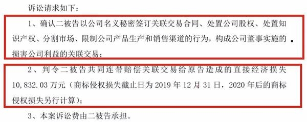 承德露露此则公告称,公司原董事长和副董事长王宝林、王秋敏二人“利用职务便利,以公司的名义,秘密与关联企业露露集团、汕头市高新区露露南方有限公司及香港飞达企业公司签订的《备忘录》《补充备忘录》等关联交易合同”,要求两人赔偿关联交易给承德露露造成的直接经济损失1.08亿元。