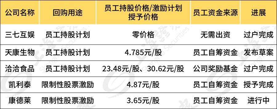 仔细查询不难发现,社保、险资、北向资金已悄然出现在上述五家上市公司的十大流通股东榜中,个别公司甚至还通过定增引入超级战投。先看回购股份用途,这五家全部是用于员工持股计划或股权激励。这作用比注销股权可能更能挑动投资者的喜好度,公司利益跟员工及高层绑定,预示公司上下会更积极干活。回购计划“速战速决”公司股价均翻倍