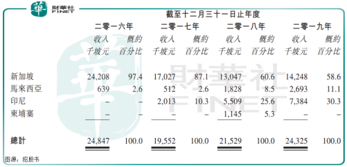 目标公司销售市场主要也是在新加坡、其中2016-2019年,新加坡市场贡献收入占比分别约为97.4%、87.1%、60.6%及58.6%。
