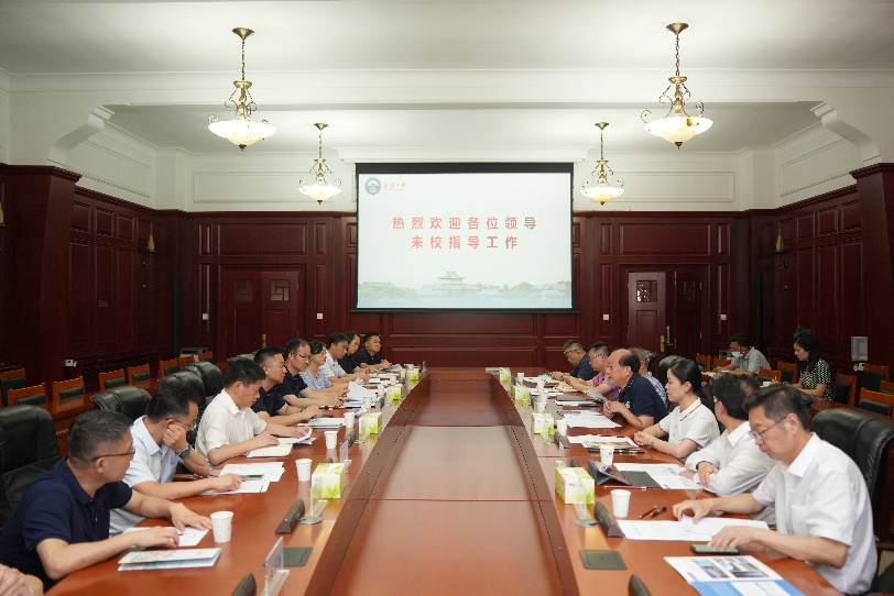 7月13日,中国电建装备集团有限公司党委书记、董事长傅勇,武汉市洪山区区长严中兴一行来校调研。武汉大学副校长李资远会见了客人。双方就更好推动“十四五”期间校企联合、成果转化、人才培养、应届大学毕业生招聘等工作开展座谈交流。