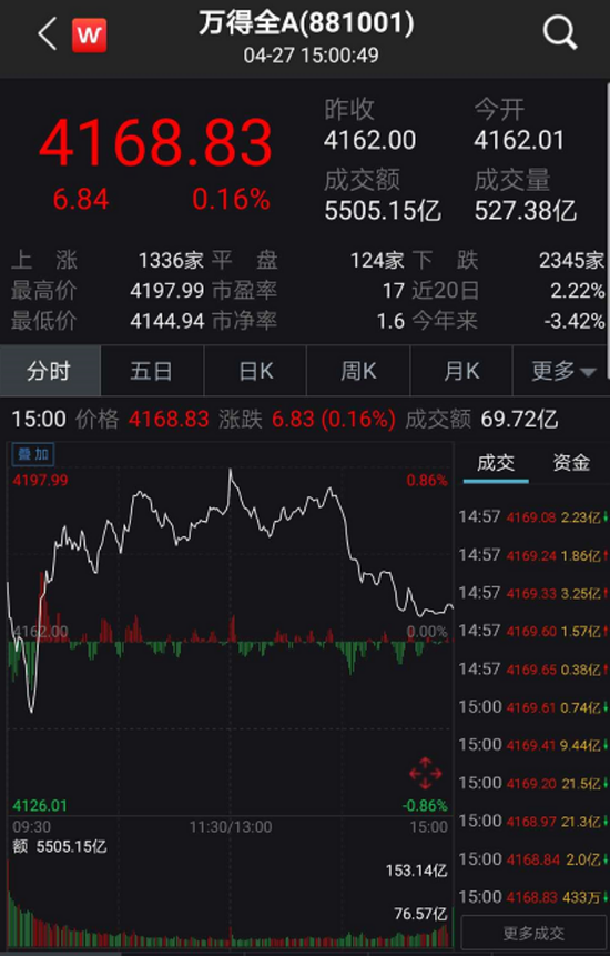 4月27日,A股三大指数迎来明显反弹迹象,权重板块带领明显。当天,上证综指低开高走,指数小幅微涨0.25%。